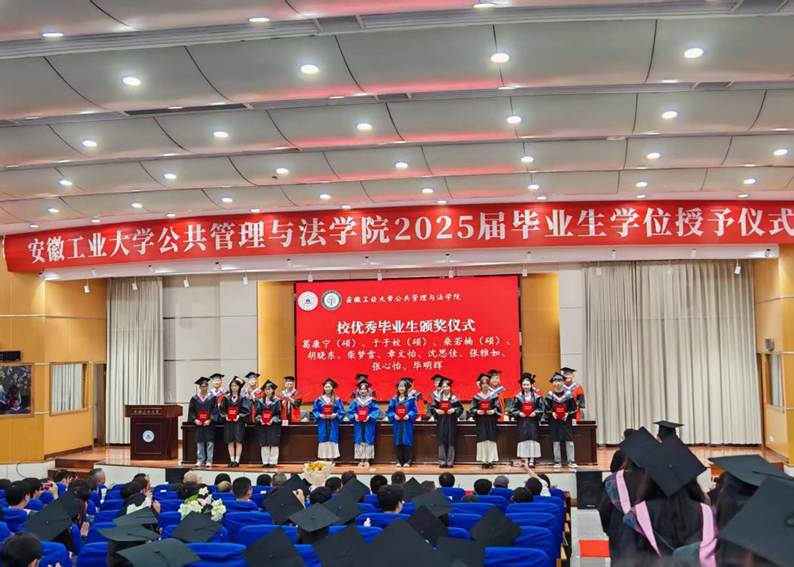 关于表彰2025届省优秀毕业生、校优秀毕业生的决定》,学院领导和各系主任为安徽省品学兼优毕业生、校优秀毕业生颁发了荣誉证书。副院长卢成会宣读了《h漫