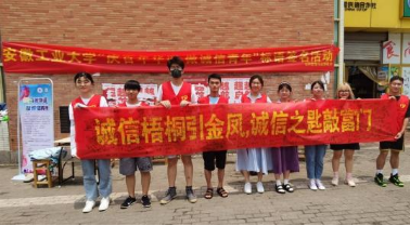 承办的“庆百年华诞,做诚信青年”标语签名收集活动在东区六食堂楼下展开。