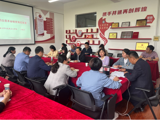 马克思主义学院教师王凌云同志以《完善党的自我革命制度规范体系》为题作了专题辅导报告。报告从党的自我革命制度规范体系的形成发展、推动完善党的自我革命制度规范体系两个部分,介绍了党的自我革命的战略思想和自我革命制度规范体系的实践模式,指出要坚持政治意识和法治思维相统一、坚持跳出治乱兴衰历史周期率“两个答案”相统一、坚持思想建党和制度治党相统一,并从立规矩、强约束、纠偏差、促执行等四个方面介绍了党的自我革命制度规范体系的丰富内涵。报告对大家深入学习贯彻习近平新时代中国特色社会主义思想,推进全面从严治党具有较强的针对性和指导性。