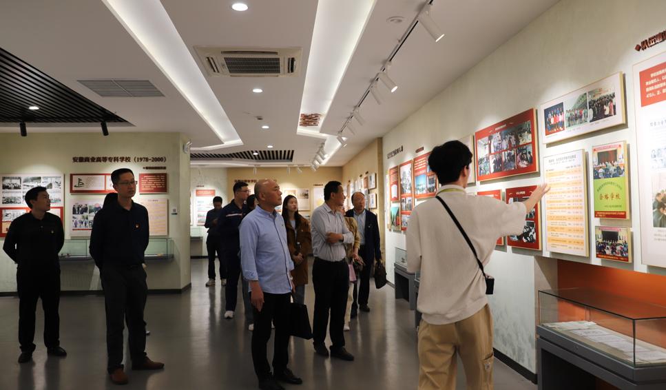 在安徽工业大学校史馆,同志们跟随讲解员一起追溯学校改革发展建设历程中取得的成绩,品味学校在不同历史时期为国家和地方经济建设做出的重要贡献,通过校园全景沙盘、实物、图文等,多维度了解感受学校走过的六十五载光辉历程。之后,同志们还参观了佳山校园,考察了安徽工业大学模拟法庭,h漫