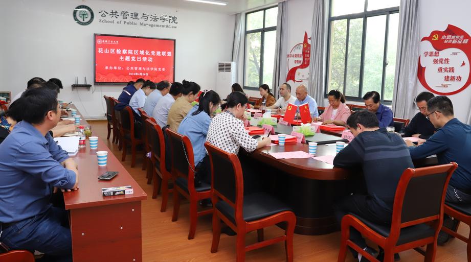 承办的花山区人民检察院区域化党建联盟“弘扬法治精神 助力依法治市”主题党日活动顺利举行。花山区人民检察院,以及联盟成员皖能发电(马鞍山)公司、市妇幼保健院、马鞍山老年医疗保健研究所、马钢股份四钢轧总厂、花山区濮塘镇濮塘村、德驭医疗马鞍山总医院、马鞍山港口集团、马鞍山软件园、西湖花园小学、市烟草局钢城分局、花山税务局等单位的党组织负责人和工作人员,安工大h漫