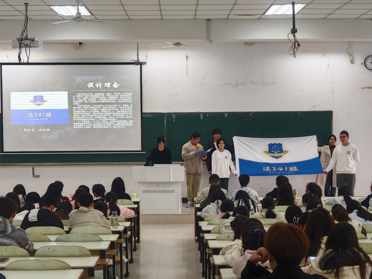 最终,紧张又刺激的时刻到来,工作人员统计评委打分结果并由主持人公布比赛获奖情况。获奖班级分别是:一等奖法242班;二等奖法241班、法243班;三等奖政241班、社241班、事241班;获得最佳组织奖的是政242班;获得最佳展示奖的是社242班;获得最佳创意奖的是事242班。随着颁奖结果的揭晓,本次班徽、班旗、班服设计大赛也迎来了尾声,各评委上台作发言总结后,活动正式圆满结束。