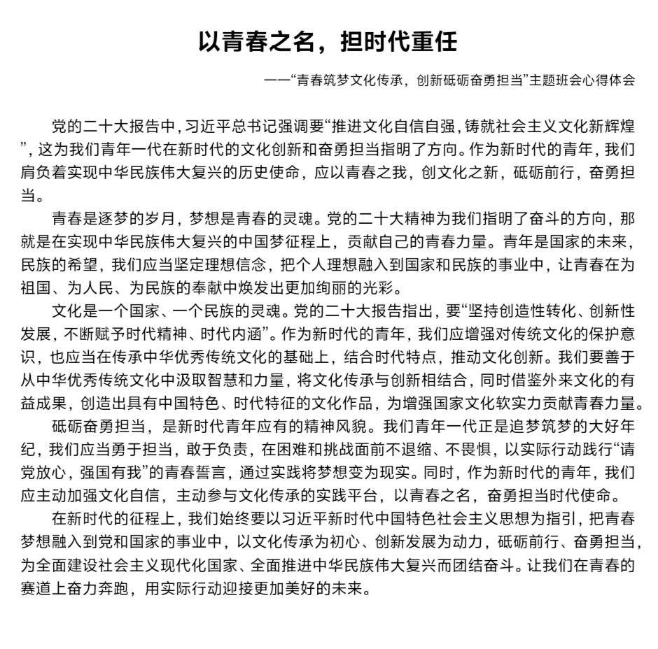 在校团委的带领下于2024年11月25日-12月15日组织开展了“青春筑梦文化传承,创新砥砺奋勇担当”学习宣传活动。