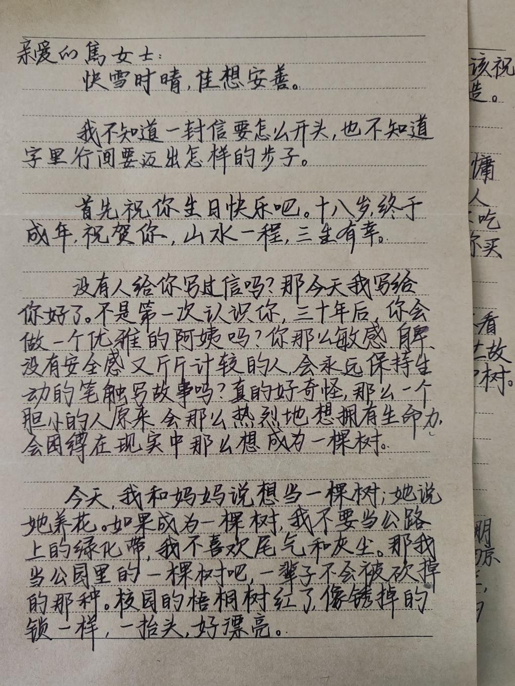 “时光信笺·情谊绵长”书信活动不仅唤起了同学们对书信文化的重视,传承了书信这一古老而美好的交流方式,还激发了同学们对生活的热爱与感恩的情怀,让这份情谊如同时间笺语般,穿越岁月长河,历久弥新。在时光信笺中,愿每个人珍视当下情谊,用真诚书写温暖。未来,携手共进,让美好情谊在校园持续绽放,共同成长!