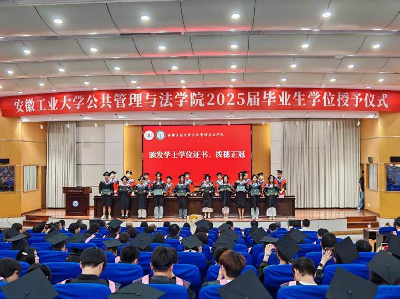 关于授予2025届毕业生硕士学位、学士学位的决定》。学院全体党政领导、教授委员会及系主任为每一位毕业生授予学位、正冠扶苏、行拨穗礼,寓意学有所成。
