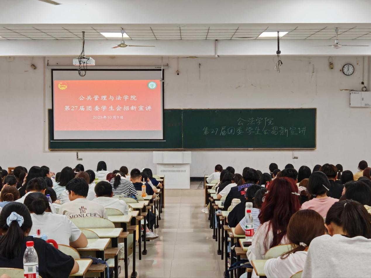 在教三南203教室举办了2025级新生部门宣讲大会。学院各部门负责人、工作人员及全体2025级新生参加了此次宣讲活动。