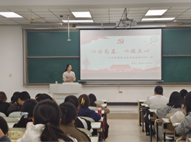 学生团委副书记燕文勤担任主讲人,带领新生共同追溯学校发展历程,领会校训精神内涵。