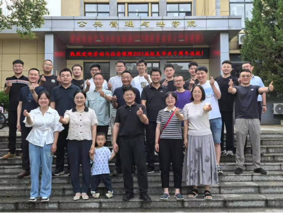 2025年6月14日,劳动与社会保障专业2015届校友毕业十周年返校,学院在402会议室隆重召开欢庆座谈会。座谈会由学院副院长杨哲主持,学院党委书记胡正友,副院长周浩然、卢成会,2015届辅导员徐甲,劳动与社会保障系主任汪伟及部分教师代表,2024级部分学生代表参加了交流座谈活动。