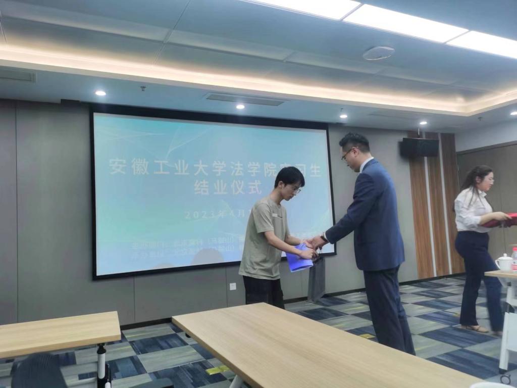 法学系法学专业本科毕业班9名同学顺利结束了在北京盈科(马鞍山)律师事务所为期一个月的毕业实习。盈科(马鞍山)律师事务所为此专门组织了一次结业仪式,并为学生们颁发了结业证书与结业礼。北京盈科(马鞍山)律师事务所管委会副主任、行业导师姜海平主持人结业仪式。盈科所党支部书记魏广金等领导及指导老师、h漫
