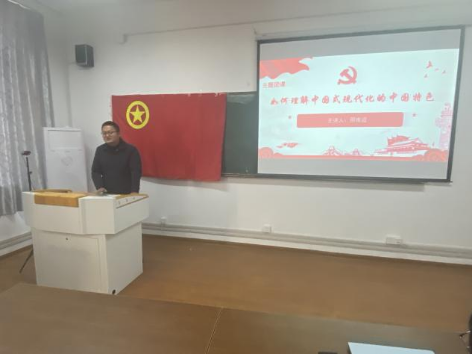 在公法楼205开展“解读二十大报告:如何理解中国式现代化的中国特色”主题团课,院团委书记邢维迢老师主讲,各年级学生代表参加。