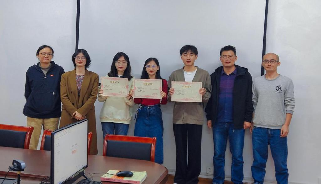 研究生科技学术报告会院级初赛主要包括三项流程,首先,由参赛研究生分别进行学术汇报,其次,评阅老师进行提问及专业点评,最后,评委老师根据研究生的论文水平及汇报展示情况进行综合匿名评分。经过评委的评定,陈永妍、董祥龙、方雪涵同学分获研究生科技学术报告会院级初赛一、二、三等奖。现场评委老师为获奖同学颁奖并合影留念。