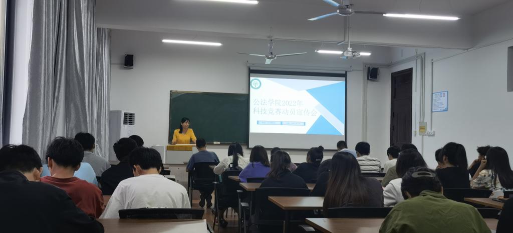 在本部公法楼205举行科技竞赛动员宣传会,学院教学副院长孔东菊老师出席,指导教师代表、各年级学生代表80余人参加,院团委书记邢维迢主持。