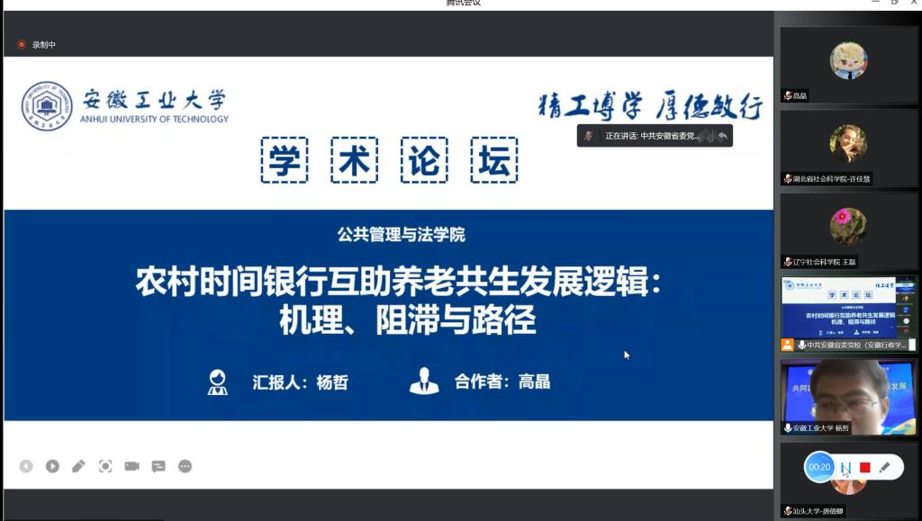 杨哲老师与硕士研究生高晶、陈涛依托安徽省哲学社会科学规划一般项目(医养结合养老服务需求评估、模式比较与政策回应研究)合作形成论文(农村时间银行互助养老共生发展逻辑:机理、阻滞与路径),受邀在分论坛中作主题报告,获得与会专家良好评价。通过参加此次论坛,有助于拓宽h漫