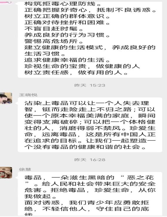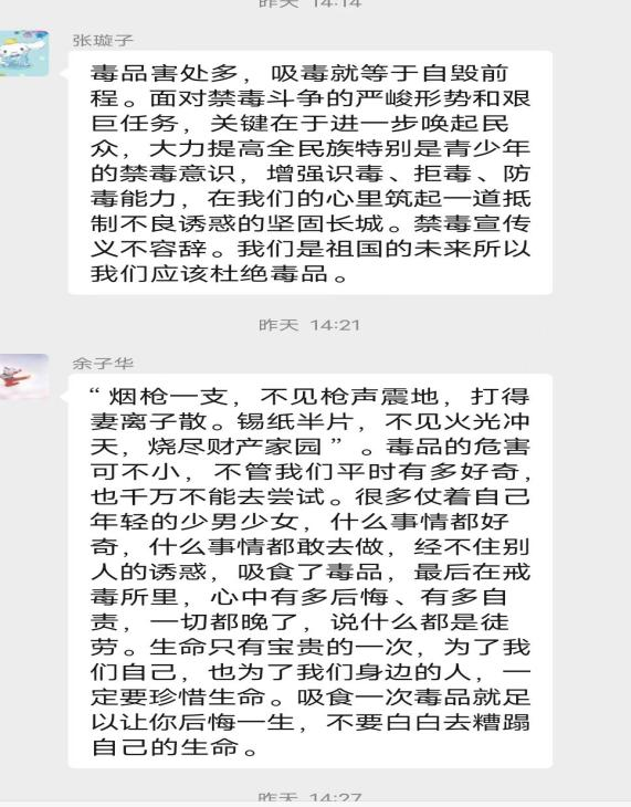 社201班团支部则通过线上教学的形式,带领同学们学习禁毒歌曲《生命》,通过亲身参与的方式,增强了同学们对于禁毒活动的参与感,使同学们对于毒品的拒绝内化于心,外化于行。
