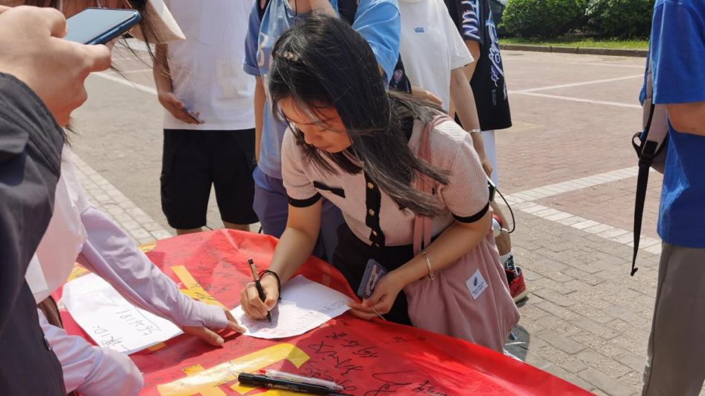 承办,两校区两千余名学生共同参与。通过前期发布第二课堂活动,学生们踊跃报名,积极参与本次活动,在红色条幅上留下自己的签名。h漫