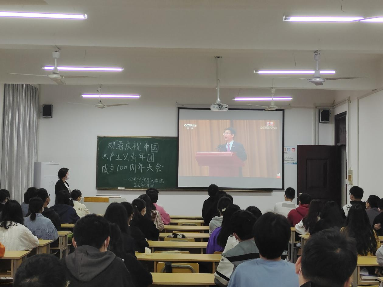 师生通过线上线下方式第一时间收听收看大会直播,共同庆祝中国共产主义青年团成立100周年。