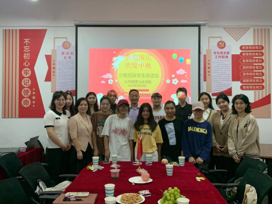 茶话会伊始,同学们边品尝学院为同学们准备的节日月饼、水果、茶点,边敞开心扉的分享入学以来的学习生活适应情况和军训期间的感受。学院党委书记胡正友代表学院对全体少数民族学生送上节日问候和祝福,表达了学院对少数民族同学们的关心关爱。他对少数民族同学们提出了几点殷切希望:一是珍惜来之不易的学习机会,脚踏实地学好专业知识,;二是积极参与志愿服务、社会实践等课外活动,努力提升自身综合素质能力;三是时刻保持清晰的头脑和积极健康的心态,坚定理想信念,厚植爱国情怀,提高思想道德素养;四是以实际行动做好民族团结的践行者和宣传者,共同促进校园和谐文明;正处级组织员江文丽向同学们介绍了本次茶话会的目的和意义。中秋节、国庆节的历史渊源和重要意义进行了详细讲解,引导各民族学生进一步了解、认同中华民族传统节日,感受中华优秀传统文化的魅力。