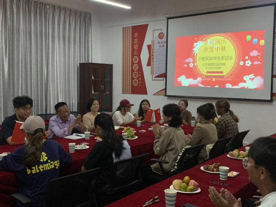 在公法楼305活动室举办“喜迎国庆、欢度中秋”少数民族学生茶话会活动。学院党委书记胡正友、学院正处级组织员江文丽出席活动,2023级辅导员钱前、2023级新疆新生以及其他年级少数民族学生代表20余人参加。本次茶话会由少数民族学生专职辅导员妮萨老师主持。