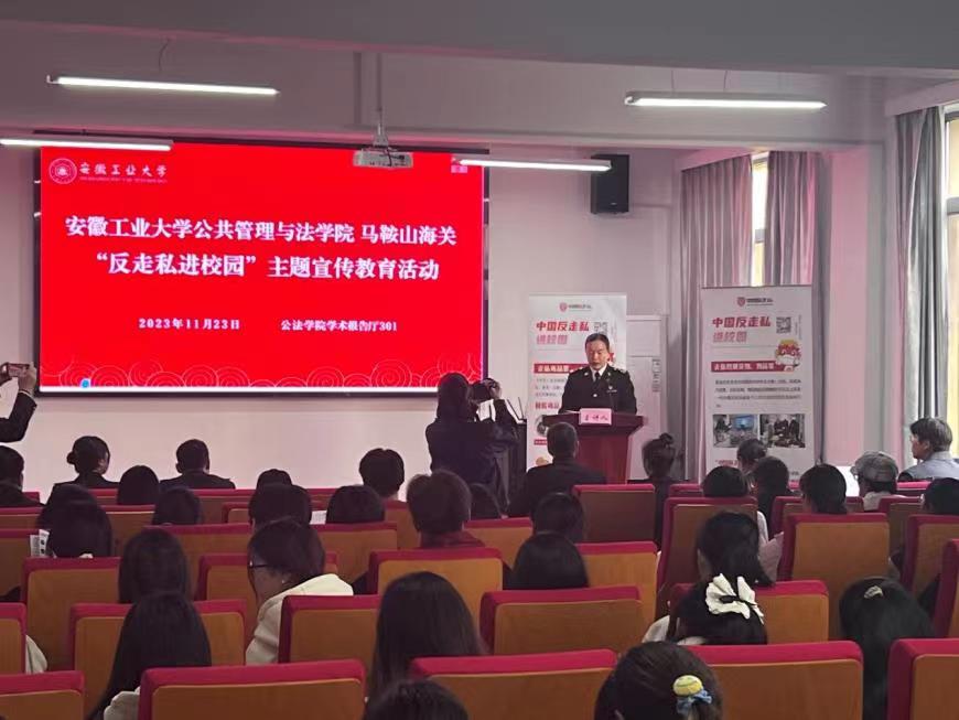 、马鞍山海关在公法楼学术会议中心联合举办“反走私进校园”主题宣传教育活动,守护“无私”的青春。马鞍山海关副关长吴钧、h漫