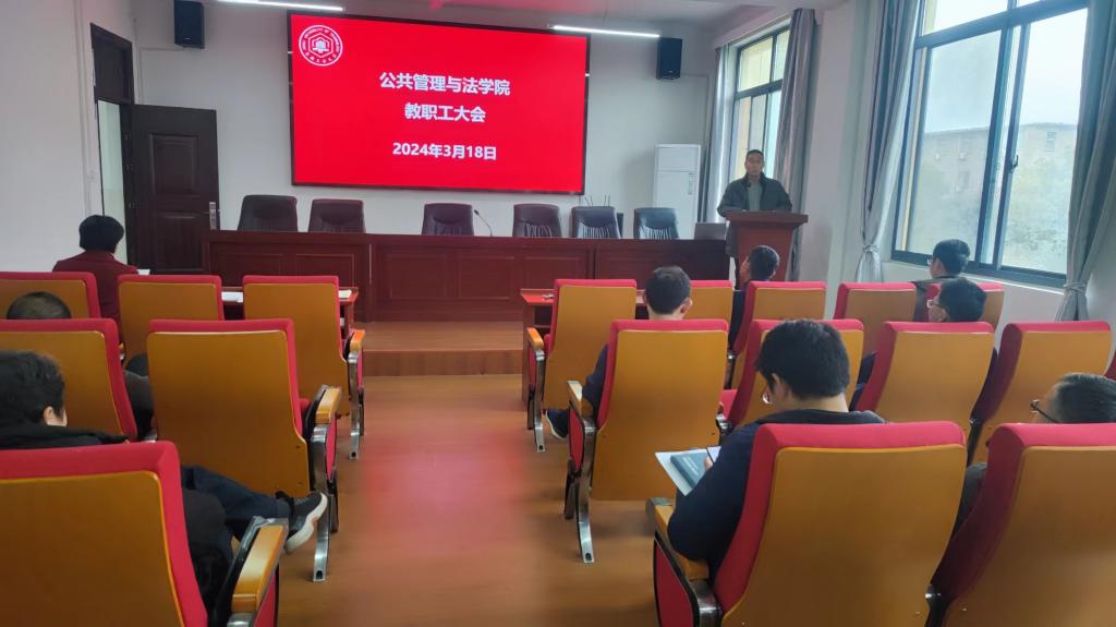 在学院301报告厅召开教职工大会暨年度综合考核述职测评会,学院党委书记胡正友主持会议,全体教职工及学生代表参加会议。