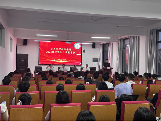 在佳山校区公法楼301举办2024级硕士研究生新生入学教育会。院党委书记胡正友,院长徐济益,党委副书记周浩然,副院长杨哲、王务均,研究生辅导员产兵华老师、公共管理学硕负责人卢成会老师、MPA中心主任问延安老师、JM中心主任李青老师、法学系系主任徐刚老师、社会政策与社会法学硕负责人戚枝淬等以及2024级全体研究生参加活动。本次活动由学院副院长杨哲主持。