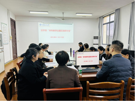 2024年11月27日下午法学系全体教师在公法楼401办公室举办了本学期“本科教学主题交流研讨”活动。