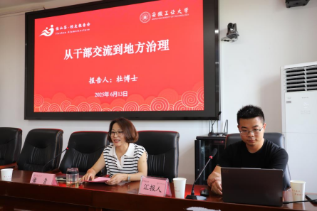 开班式后,优秀校友杜博士以《从干部交流到地方治理》为题带来精彩分享。杜博士结合自身在安徽工业大学、同济大学本硕博阶段的学术轨迹,系统阐释了干部异地交流的制度逻辑、地方治理对科技创新的作用机制等前沿议题。